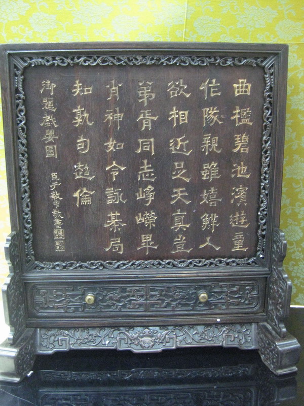 Important Imperial Zitan Table Screen Inlaid w/ Ivory Figures